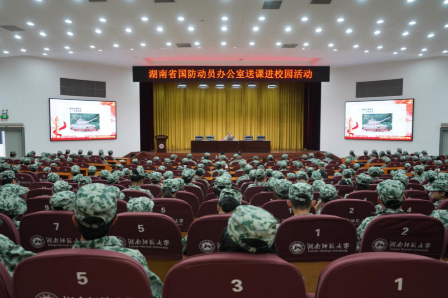 (通讯员 陈艺婷 吴波)10月14日下午,一场主题鲜明、内容丰富的“国防教育第一课”在我校国际学术报告厅成功举行。此次活动由学生工作部、武装部组织,湖南省国防动员办公室会同省人防协会协助开展。活动特邀原国防科技大学军政基础教育学院军事学教授董晓军来校,作了以《利剑擎天慑四方铁甲洪流震八荒——93大阅兵新装备探秘》为主题的专题授课。学生工作部、武装部部长陈文雄,学生工作部、武装部副部长段婷出席活动,300余名师生代表参与学习。
