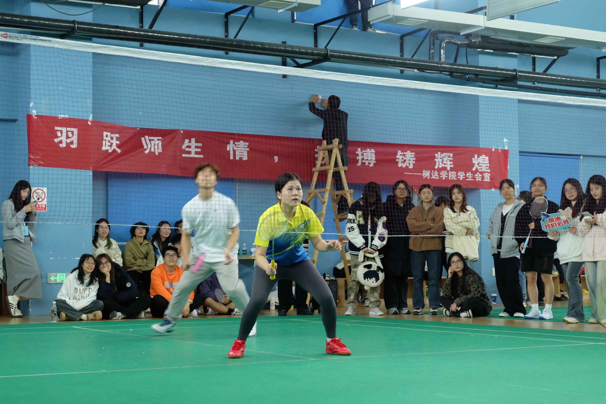 在相互配合、共同拼搏的比赛过程中,运动员们紧握球拍,身姿矫健,展现出师生的深厚情谊与体育追求。本次比赛不仅是一场激烈的体育竞技,更是学院师生积极昂扬精神风貌的生动诠释,师生情谊也在挥洒的汗水中得到了升华。