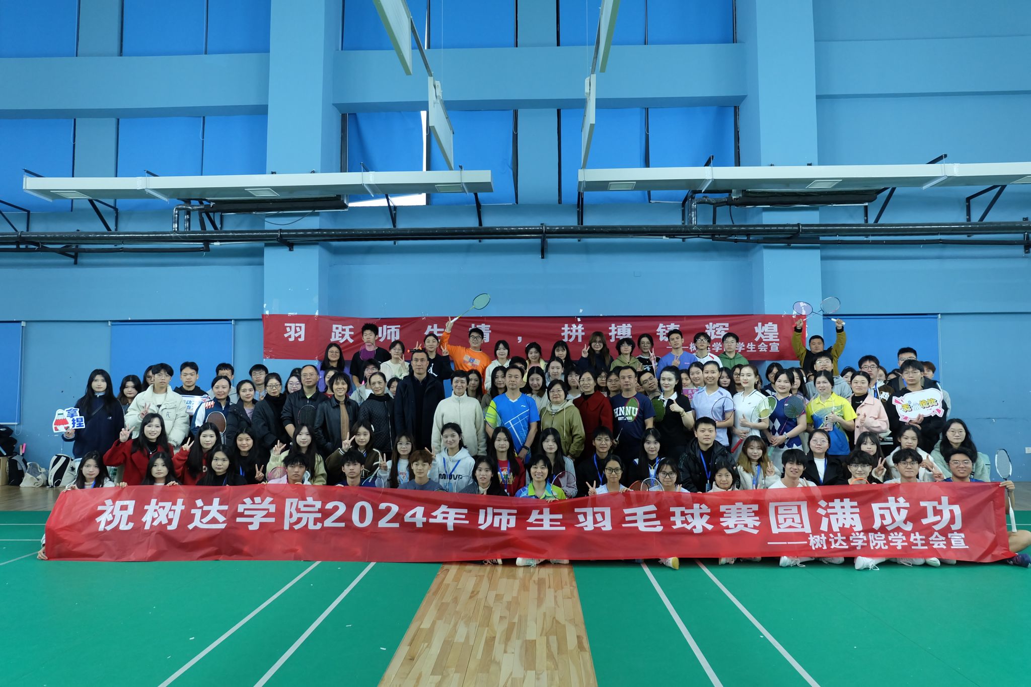 (记者 舒欢 周李羽檬)11月21日下午,我院学生会在咸嘉湖校区羽毛球馆举办了2024年师生羽毛球比赛。院长向坚持、党委副书记赵鑫海以队员身份参加了此次比赛。专职组织员曾南雁、纪检书记朱映红、副院长梁蓓蓓、副院长朱兴中等到现场为参赛师生加油鼓劲。