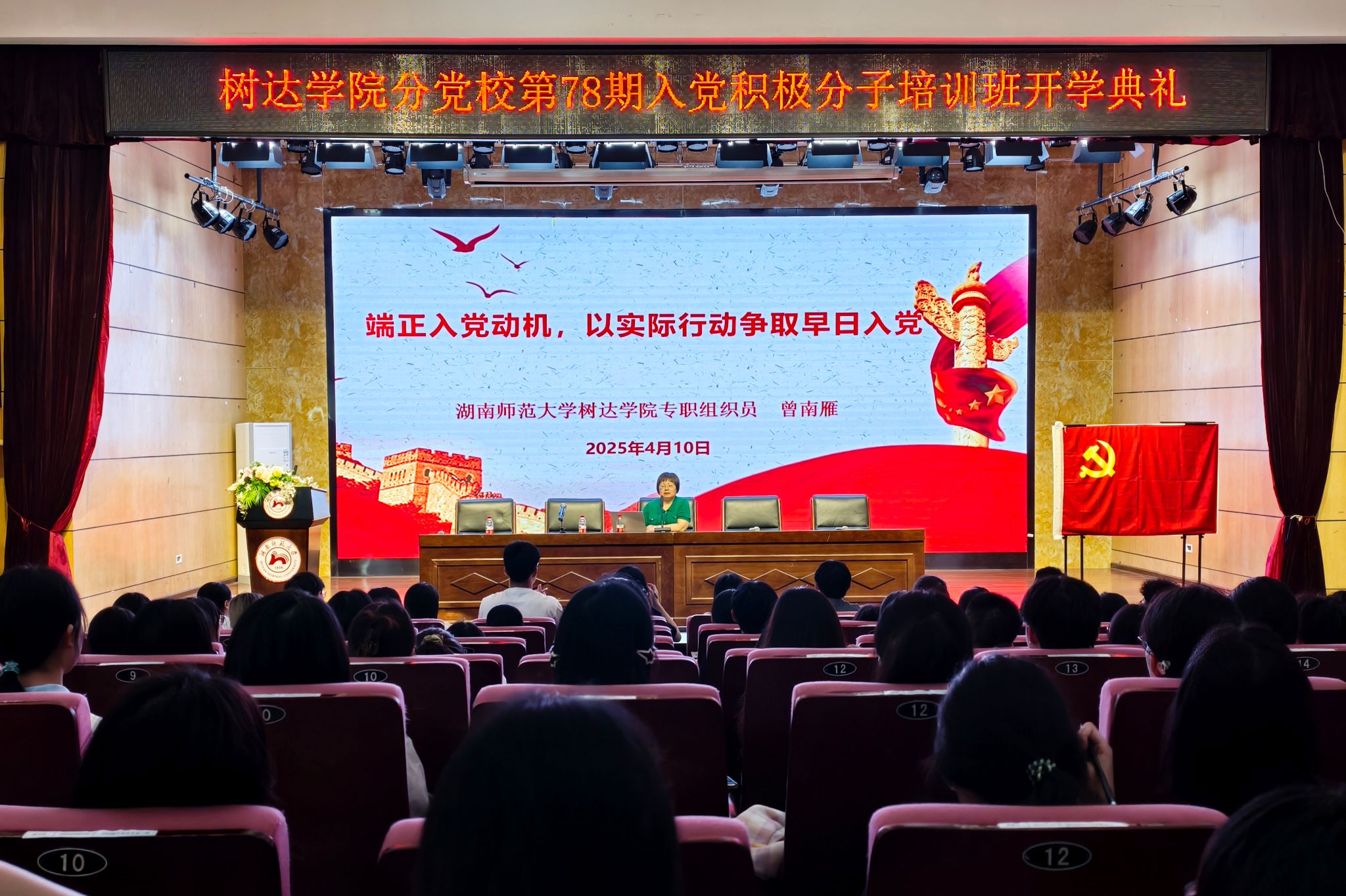 (记者 邹韵霖 胡穗源 缪雨)4月10日中午,我院专职组织员曾南雁在树达楼113报告厅给第78期入党积极分子讲授了以“端正入党动机,以实际行动争取早日入党”为主题的党课。