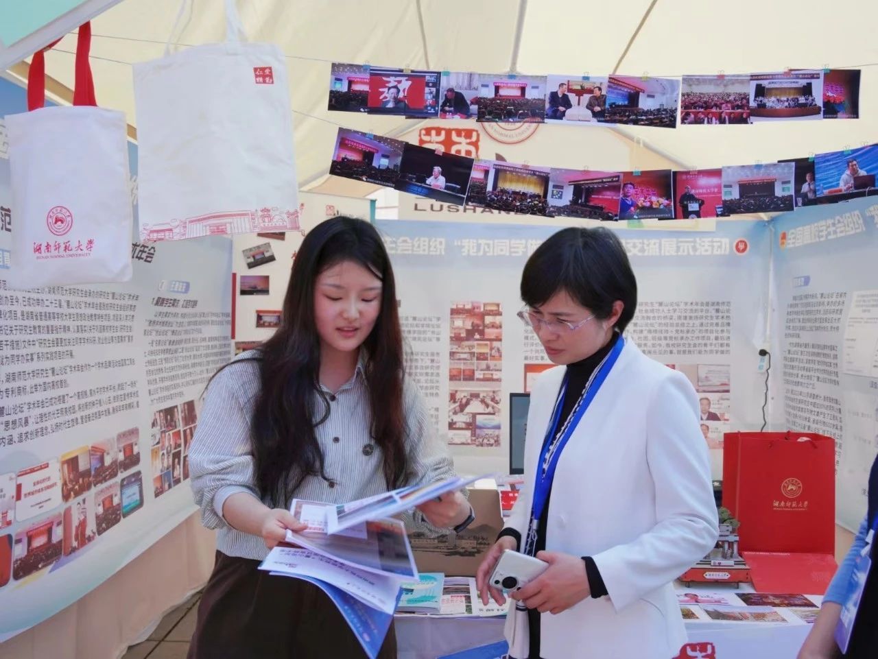 在湖南师范大学的深厚学术土壤中,“麓山论坛”学术年会如一颗璀璨的明珠,熠熠生辉。而这次“麓山论坛”学术年会项目交流活动的展示,便是绽放耀眼光芒的时刻。这一切,都离不开幕后工作人员的精心筹备与付出。在校团委和研究生院团委的有力指导下,我校研究生团委研究生会成员上下齐心协力、全力以赴,以项目成员小组为核心,新媒体工作室为主力,深入挖掘项目内涵,结合学术前沿,精心策划了展示环节的内容与形式。通过反复讨论、缜密谋划,力求将项目的亮点展现得淋漓尽致;全面精心准备视频材料,用影像记录项目的每一个精彩瞬间;不断反复推敲、尽善尽美,力求精准传达项目立意、全面展示我校研究生的青春风采。从筹备过程到展示环节,每一个细节都凝聚着大家的智慧与汗水。