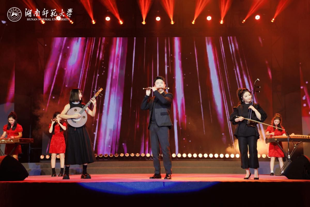 联欢会在附小麓苗舞蹈团带来的开场舞《智行少年》中拉开帷幕,小舞者们灵动的动作,搭配“萌狮助阵、科技同行”的创意瞬间点燃全场热情。时尚民乐《骐骥》中千年丝竹与现代乐队跨界碰撞,演奏者们以精湛的技艺展开穿越古今的音乐对话。古典舞《蘭叙》以兰为意,演员们舞出了幽谷自芳的从容与风雨不折的坚韧,在清雅乐声中尽显东方美学的深邃与曼妙。经典新编《浏阳河》在保留原曲深情内核的基础上注入现代编曲巧思,竹笛、钢琴与乐队伴奏相得益彰,让这首深植湖湘儿女血脉的旋律荡起新时代的涟漪。服饰秀《潇湘瓷韵》以校博物馆馆藏长沙窑文物为魂,将瓷的温润、服饰的灵动与光影的璀璨融为一体,重现千年窑火淬炼的匠心。歌曲《天地龙鳞》勾勒了“龙的传人”在新时代破浪前行的铿锵姿态,让中华文明底蕴与龙鳞象征的民族风骨交相辉映。由刘仲华校长和全体校领导班子成员一同参与的、60多位教授带来的合唱《明天会更好》,真挚歌声传递对学子、对家国的恒久期盼,温暖和声中满含对未来的美好憧憬。交响乐作品《采茶调》让观众随着音符走入潇湘的雾霭春色,感受东方田园诗意的交响画卷。《玛依拉变奏曲》灵动旋律与丰富变奏展现出哈萨克族姑娘的聪慧与对生活的热爱。《查尔达什舞曲》展现琴弓之下既有月光独语的柔情,又有火焰旋转的炽烈。著名歌唱家、音乐学院石倚洁教授接连献上三首佳作,一首《是你一直想着我》以饱满深情抒发了革命老区人民对党的感恩与对时代的致敬,在《我的太阳》这首意大利的永恒赞歌中传递爱与希望,歌剧《茶花女》经典选段《饮酒歌》,则以欢快的旋律、热烈的和声点燃全场,联欢会在欢腾氛围中圆满落幕。