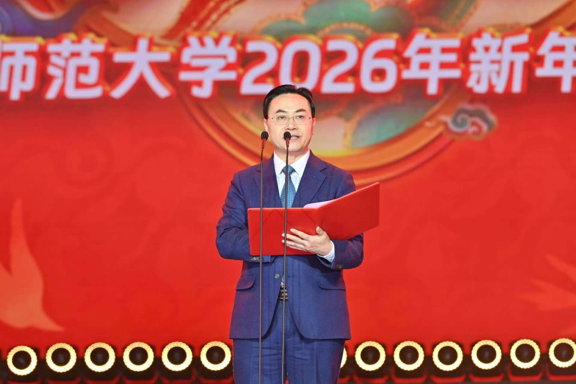 刘仲华向各位领导嘉宾、全体师生员工和关心支持学校发展的社会各界人士致以衷心的感谢和新年的美好祝福。他回顾了2025年我校在科创港校区建设、人才培养、师资队伍、科研创新、学科布局、民生福祉等方面取得的突破性成绩,并强调,2026年是“十五五”开局之年,也是学校奋力推进“双一流”建设的关键年,学校将继续深化综合改革,一体推进教育科技人才发展,推动学校事业发展再创新的辉煌。