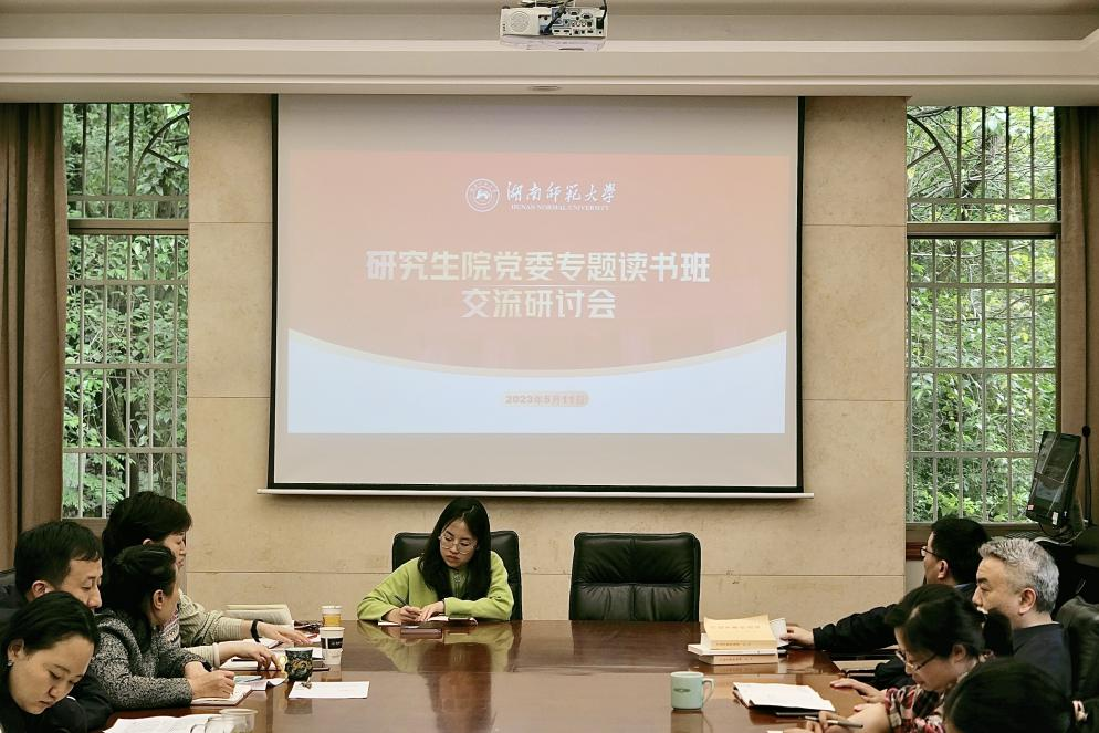 (通讯员 张韵)5月11日下午,研究生院党委举行学习贯彻习近平新时代中国特色社会主义思想主题教育专题读书班交流研讨会。会议由研究生院党委书记龚舒主持。