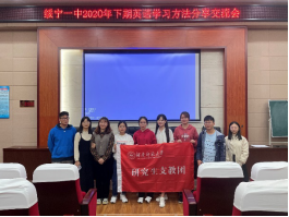 (通讯员 肖进兵 廖亚倩)为帮助学生进一步增进英语学习兴趣、改善英语学习整体面貌、提升英语学习效率,针对绥宁一中学生英语现状,在绥宁一中校领导的支持下,我校研究生支教团2020年11月19日,组织了“绥宁一中2020年下期英语学习方法分享交流会”。活动由支教团成员廖亚倩主讲,在其余成员全力配合、全校共三百余学师生参与。