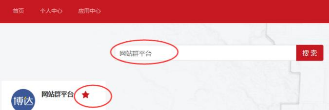 2.添加应用: 信息门户系统中搜索到“网站群平台”,再单击右边的五角星 (如图 2),将该图标添“常用应用”中。